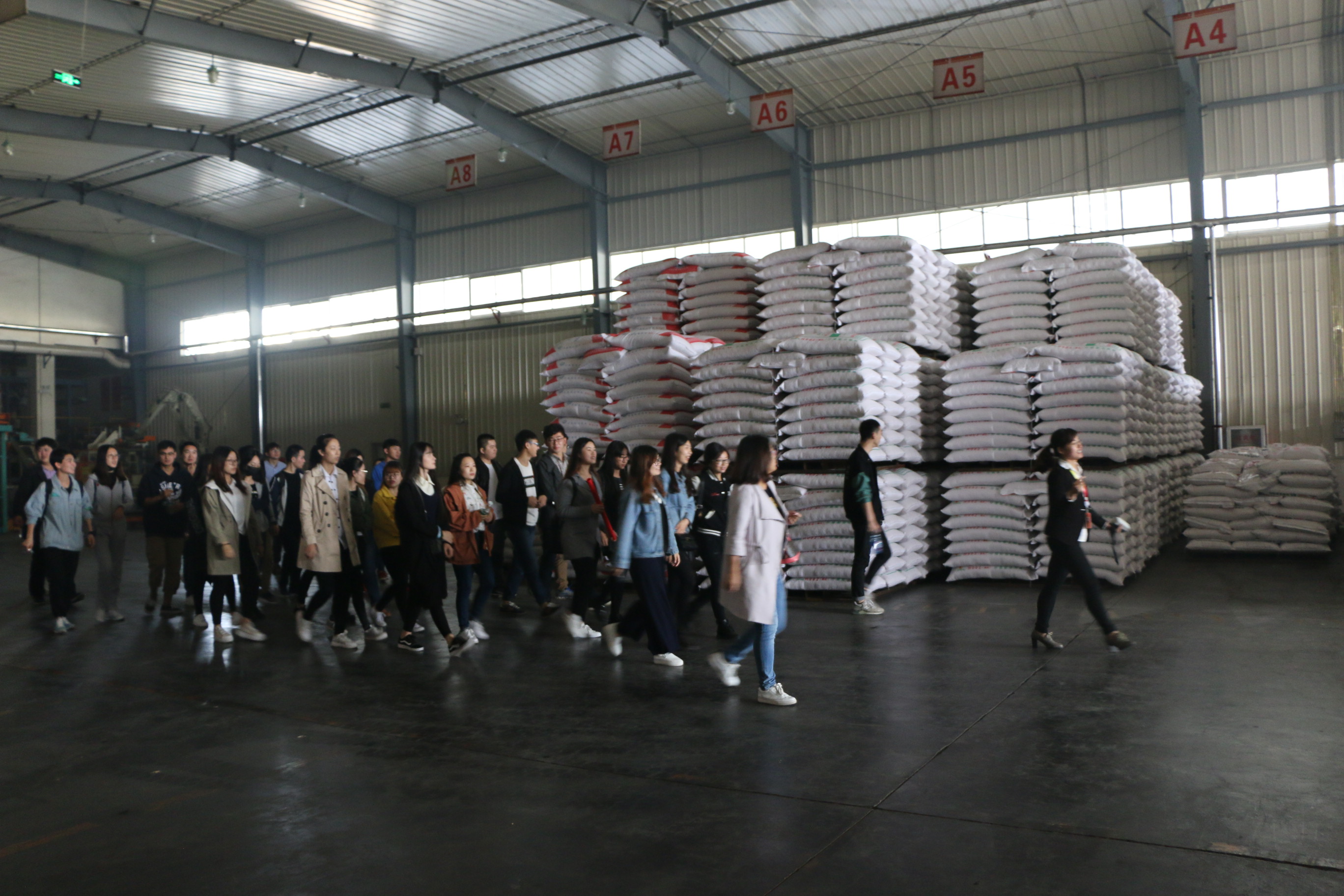 在山东大北农工作人员的带领下,同学们详细了解了山东大北农的发展历程,并参观了行政楼、化验楼以及预混料一期和二期车间,工作人员为同学们介绍了其产品特性、工艺流程、生产工艺。参观设备、厂房后,同学们观看了大北农集团的宣传片。大北农杨涛老师向同学们详细介绍了大北农集团的企业文化、发展历程、产品特点、工作地点、岗位要求及晋升路径等内容。