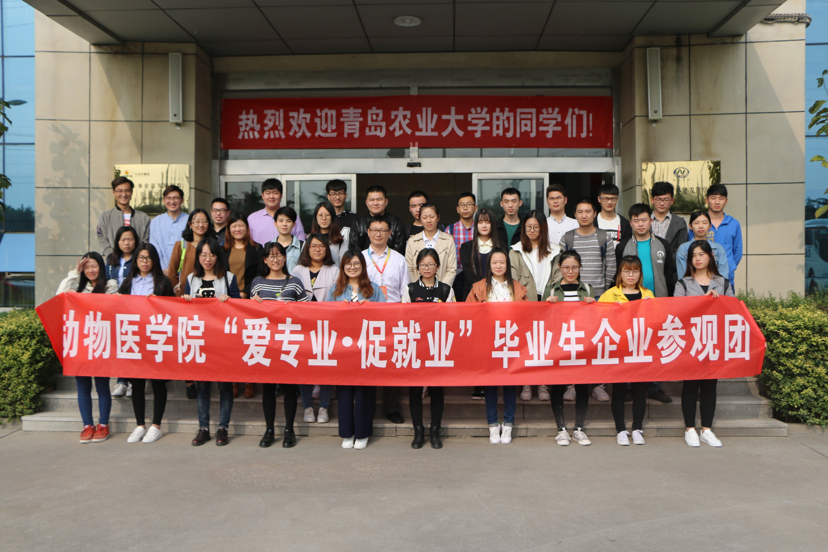 10月21日,动物医学院“爱专业·促就业”毕业生企业参观项目顺利开展,35名毕业生在辅导员王洋的组织下前往潍坊昌乐山东大北农农牧科技有限责任公司参观学习。