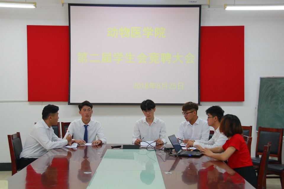 8月25日上午,青岛农业大学动物医学院第二届学生会干部竞聘大会于生物楼C205举行。前期经个人申报、部门推荐、资格审查等环节,共有31名同学参加本次竞聘,竞聘采取无领导小组讨论的方式进行,学院党总支书记孙运彩、学生工作办公室成员担任评委,最终综合选手平日工作表现、学习成绩、无领导小组讨论成绩,确定王俊博等18名同学为动物医学院任期一年的第二届学生会干部。