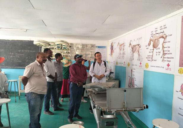 给埃塞农业部职教办领导介绍兽医外科实验室改造情况