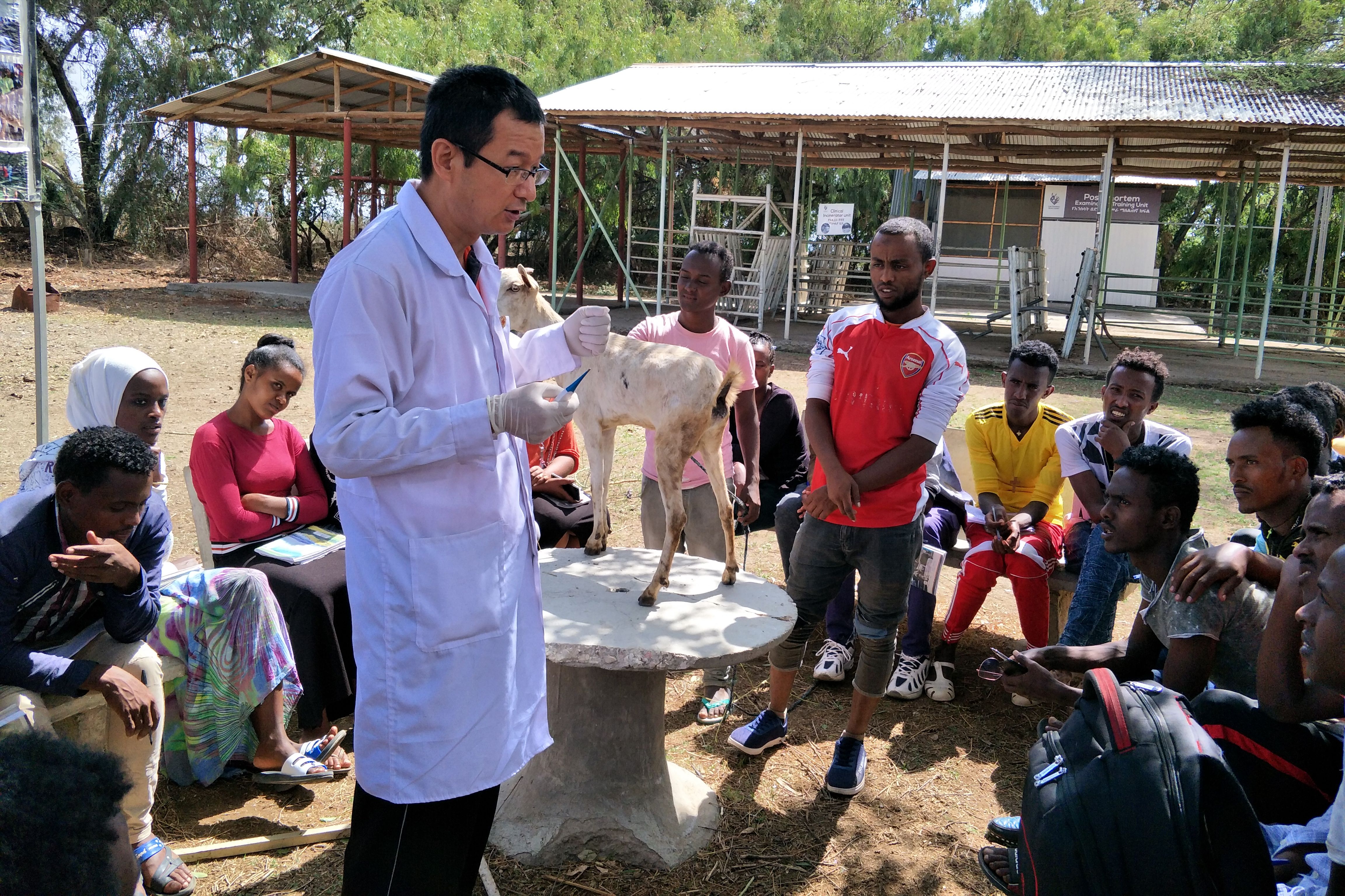国际援教,是一份爱心的付出,是国际扶贫的一种方式,是国家“一带一路”政策的实践。在援教过程中,温建新老师在传递中国友谊的同时,注重知识和技术的帮扶和传递,他了解到当地养殖户的专业知识教育相对来说比较落后,人们对人畜共患病以及其他动物的疾病了解较少,所以在援助教育的同时还结合自己的专业到农民中开展扶贫工作。如在进行人畜共患病相关疾病检测的采样工作过程中,和兽医系教师到学校周围农村,在农民牛羊放牧的田间地头或在村委办公地现场,给周围农民宣传兽医卫生知识、开展培训活动和扶贫送药送医活动;积极参加学院举办的农民培训班,和当地的老师一起对当地的农民开展系统培训,传授他们一些预防疾病的一些理论知识,告知人与牲畜都容易感染传染的一些疾病,比如布氏杆菌病、结核病等等,并介绍一些相关预防措施等;送给当地的困难户消毒液和相关药品;遇到牛羊病现场给予治疗等。温建新老师的服务精神得到了学校管推广的副校长及兽医系主任和协调员的高度认可和赞誉,拉近了中国和埃塞当地养殖户的距离,也使他们通过温建新老师了解了中国。