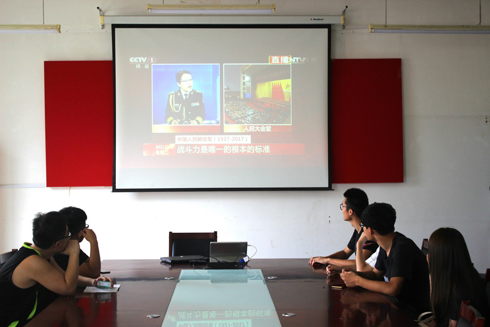 同学们十分认真地观看大会直播视频,在习近平总书记的重要讲话中一起回顾在中国共产党领导下人民军队的光辉历程,展望国防和军队现代化建设的光明前景。