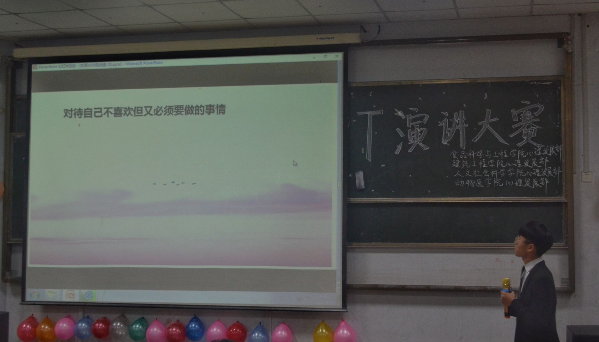 11月17日,动物医学院联合食品工程学院、建筑工程学院、人文社会学院在教学区B举办第二届“做最好的自己”PPT演讲大赛。最终动医学院隋雨欣获得一等奖,食品学院于汇进、动医学院赵继鑫、建工学院于欣三位同学获得二等奖,人文学院宫田雅等五位同学获得三等奖。