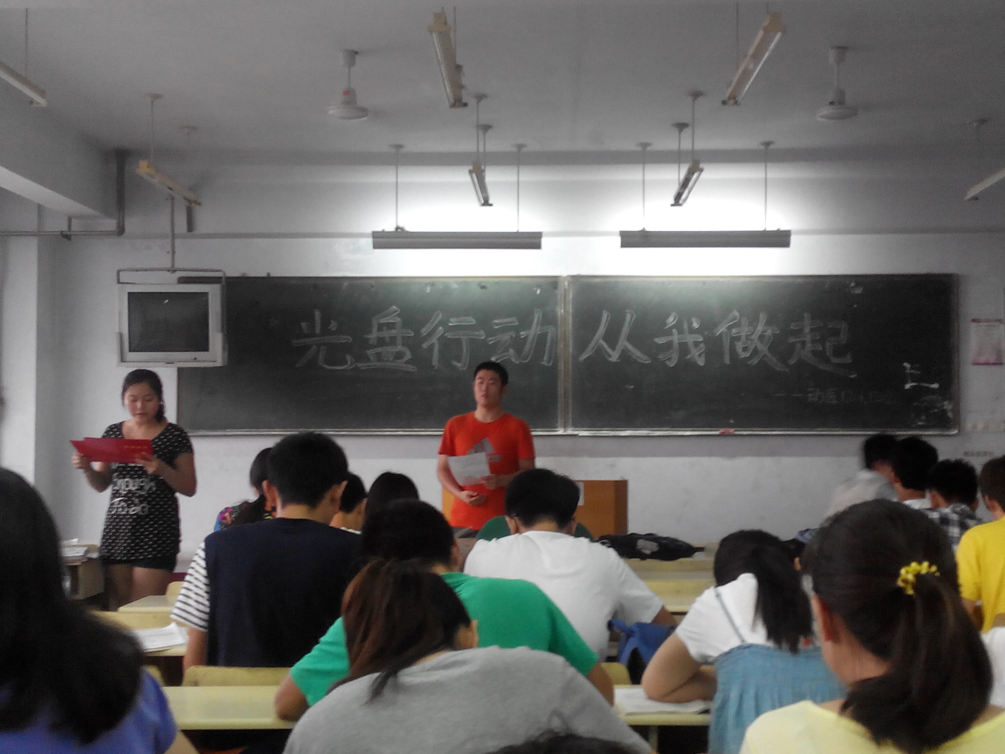 为广泛宣传科学饮食、反对浪费理念,让节约引领校园风尚,动物科技学院12、13级学生于6月22日晚在A区教室举行光盘行动倡议书签字活动。
