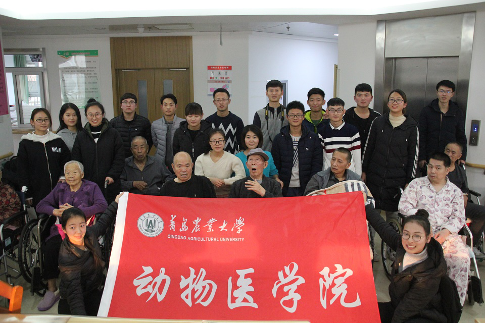 12月22日冬至,动物医学院的18名大学生志愿者走进青岛颐德康复医院开展“爱心微行动,真情暖冬日”敬老爱老活动。