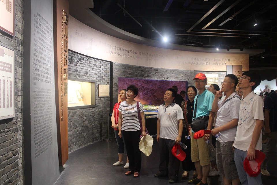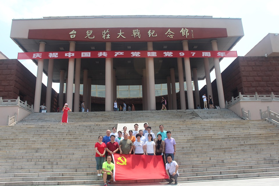 7月14日下午,全体党员参观了红色革命教育基地——台儿庄战役纪念馆。纪念馆主体建筑物前方矗立着台儿庄大战纪念碑,雄伟悲壮之势于心中油然而生。馆前三十八级台阶雄伟壮观,意味着一九三八年发生的震惊中外的中日台儿庄大战;二十四根立柱屹立不倒,支撑着白色天棚,象征着中华民族顶天立地,永远屹立于世界民族之林。首先进入的展览馆分为三个展室,展示出大战的悲壮惨烈和反抗英雄“同仇敌忾,共御外辱”的英勇顽强精神。接下来全体党员参观了书画馆,里面珍藏了台儿庄大战时参战将士和亲属以及著名书画家、政界人士的书画作品近千件。最后,他们走进全景画馆,认真观看了巨幅全景画《血战台儿庄》。画面气势恢宏,形象逼真,使观者有身临其境之感,令党员们叹为观止,对革命英雄肃然起敬。整个纪念馆融展览馆、书画馆、影视馆、全景画馆为一体,气势雄伟,庄严肃穆。