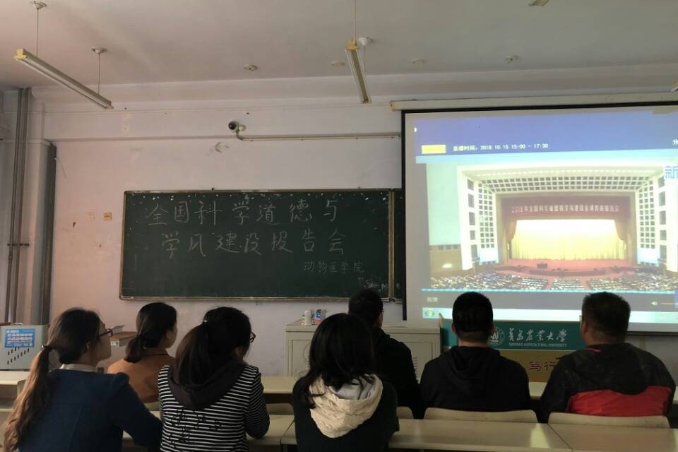 动物医学院组织2016、2017级研究生通过网络视频同步收看报告会。学习新时代中国科学家精神和爱国奋斗精神。