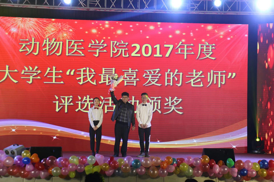 11月25日,在“动医梦想,齐鲁绽放”动物医学院成立暨2017年度总结表彰晚会上,“我最喜爱的老师”颁奖环节将晚会推向了高潮,大屏幕上依次展现获奖老师的事迹和专访,引来了同学们的阵阵欢呼和热烈掌声。获奖依次上台发表了获奖感言,畅谈了自己的教书育人心得,纷纷表示要以此为动力,继续为教师这个光辉的事业而奋斗。