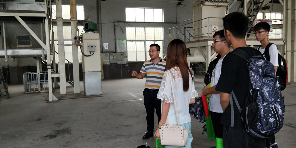 座谈结束之后,范作明经理带领调研团参观了工厂车间,介绍了各项工作的操作流程以及各种作物的发酵及作用,队员们认真聆听学习并记录。参观结束之后,实践团前往光辉养殖有限公司继续进行调研工作。