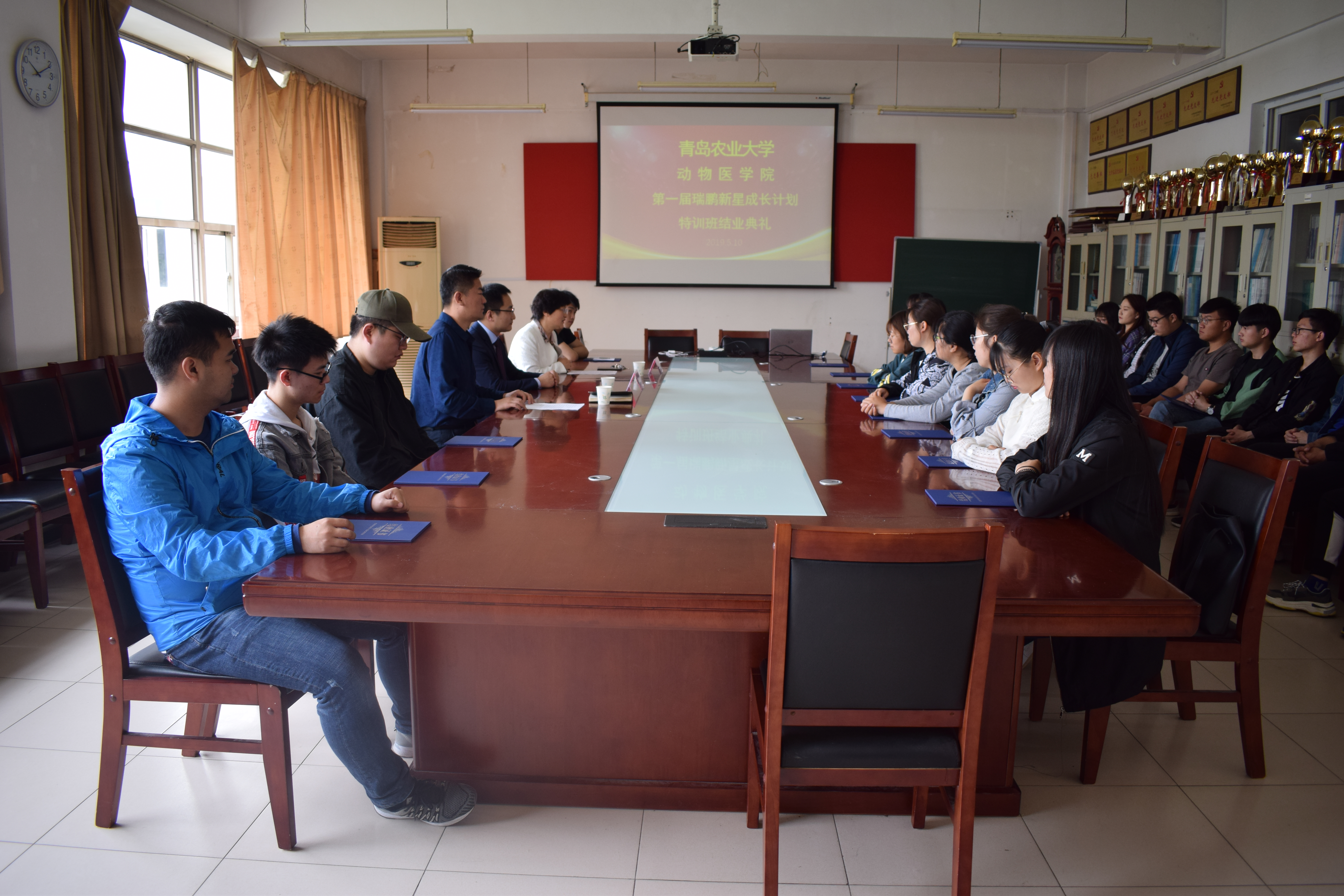 5月10日,青岛农业大学动物医学院第一届瑞鹏新星成长计划特训班结业典礼顺利举行。瑞鹏宠物医疗集团山东区技术经理李文波,动物医学院党总支书记孙运彩出席,第一届瑞鹏新星成长计划特训班全体学员参加,会议由动物医学院团委书记王传兴主持。
