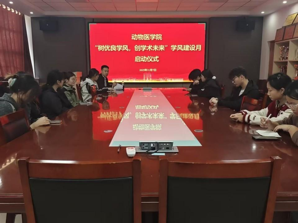 为深入贯彻落实立德树人根本任务,持续深化学院“1336”学风建设品牌内涵,11月7日,动物医学院举行2025年“学风建设月”启动仪式。本次活动以“树优良学风,创学术未来”为主题,由学院辅导员王宁主持,各班级学习委员参加。