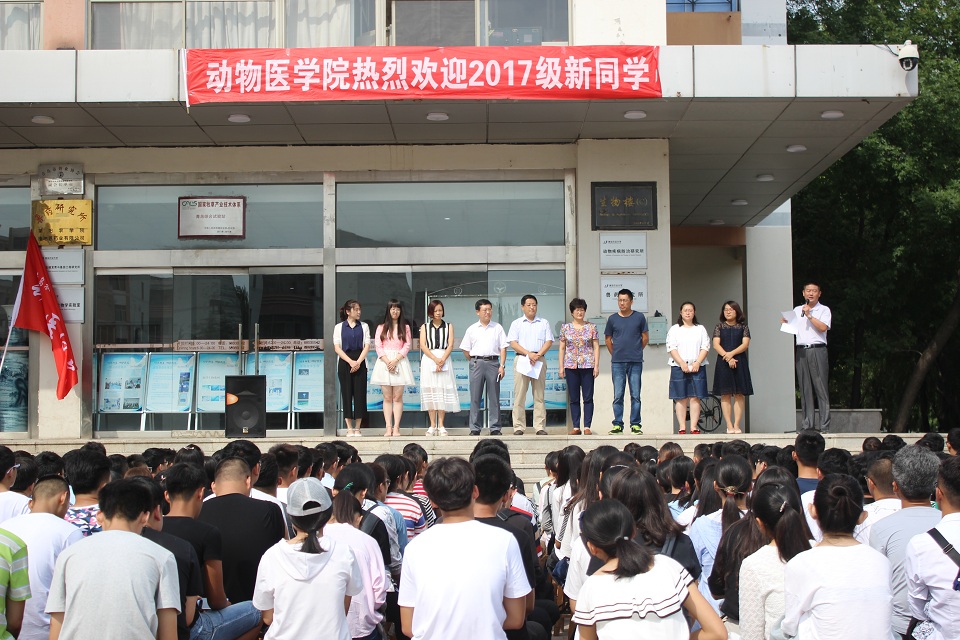 9月4日,动物医学院于生物楼前举办了学院党政领导、行政办公室成员、学生工作办公室成员与2017级新生见面会,院长单虎向全体新生致欢迎辞。