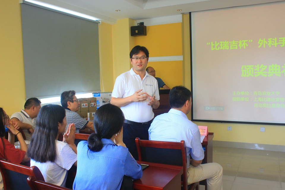 颁奖典礼上,各位评委就手术过程进行点评,主要强调术前消毒工作的细致性和手术切割与缝合的熟练性,希望广大同学能够在平日的学习中加强对实际操作的练习,学以致用。通过本次大赛组建了“比瑞吉杯”手术竞赛群,搭建了我校动物医学专业学生与青岛地市宠物医师学会和青岛市知名宠物医院以及宠物相关行业学术交流平台,拓展了学生教学实习、社会实践、创业就业渠道。