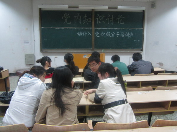5月2日晚,动物科技学院2012年第十期入党积极分子分小组在教学楼D区教室开展了与优秀党员交流活动。本次活动旨在通过与各位优秀党员的交流加深入党积极分子们的党性觉悟,体会优秀党员的生活、学习经历,并通过各位同学间的互动交流,进一步增进积极分子们对相关党性知识的理解、认识。