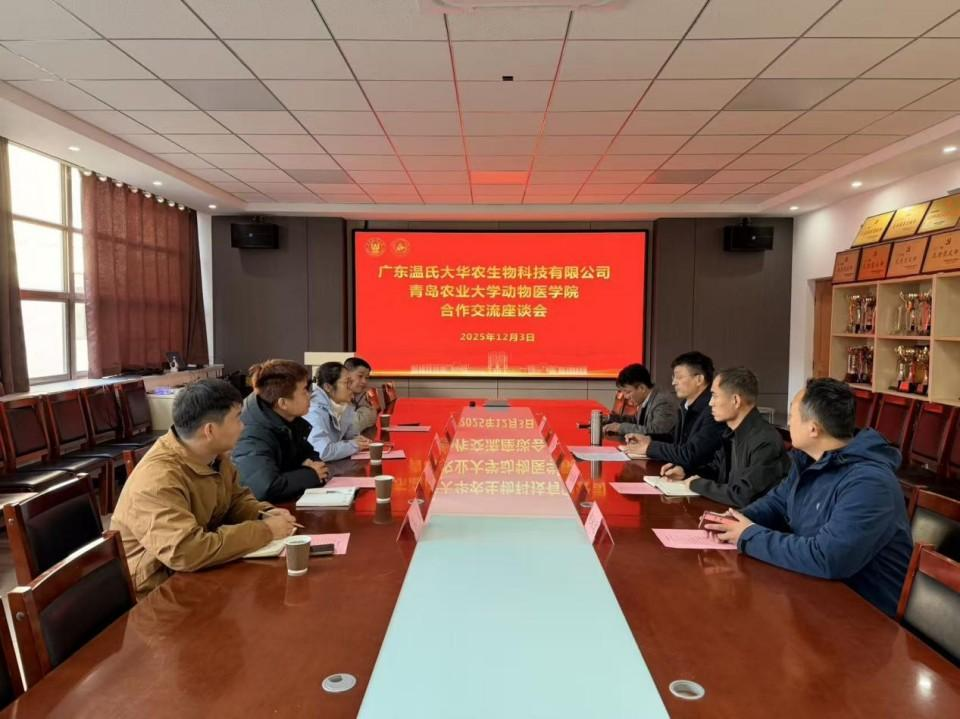 12月3日,广东温氏大华农生物科技有限公司营销中心总裁助理吴凤鸣一行到访青岛农业大学动物医学院,与学院相关负责人及专家学者进行座谈交流。