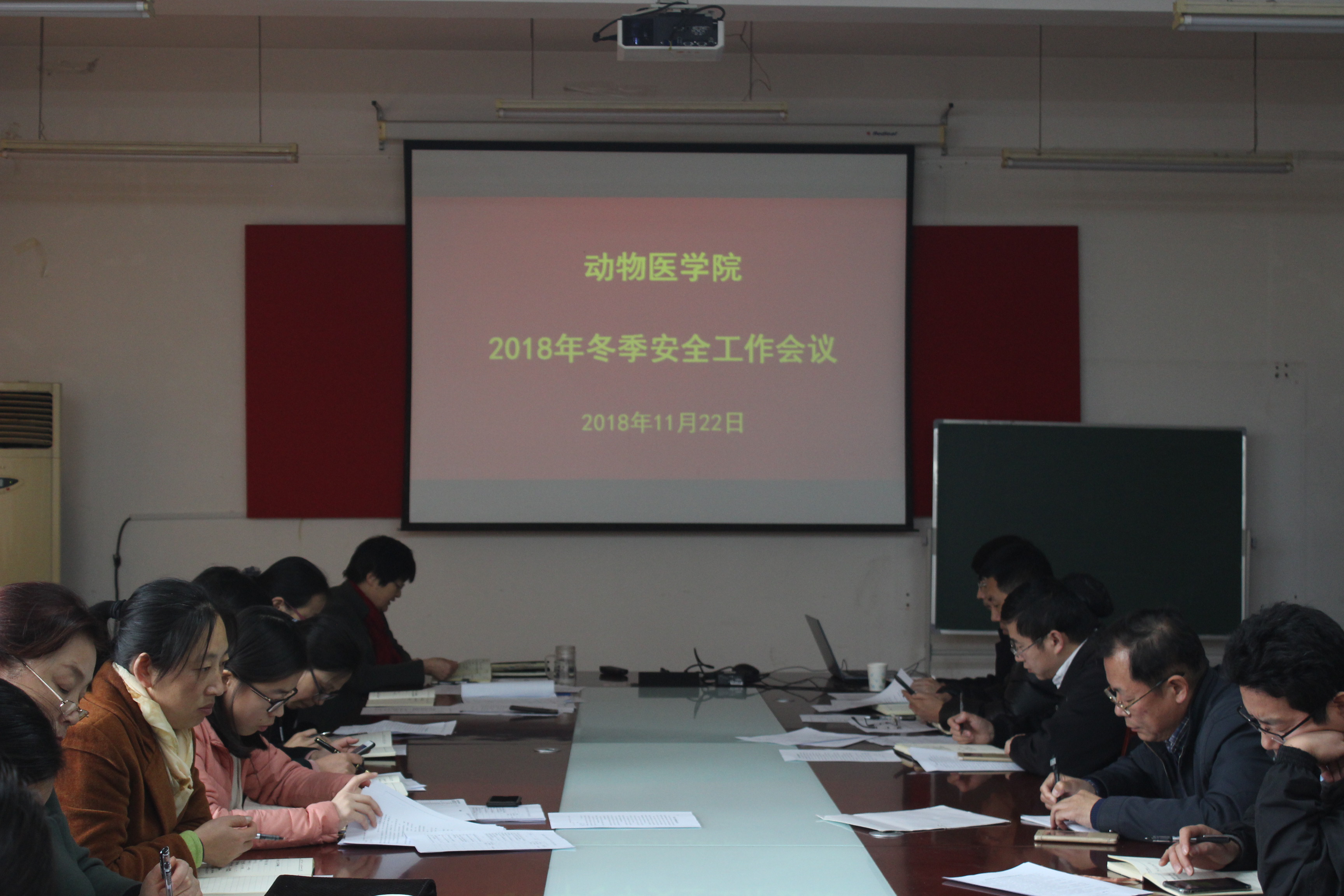 11月22日,青岛农业大学动物医学院在生物楼召开学院冬季安全工作会议,会议由动物医学院党总支书记孙运彩主持,学院全体教职工参加。