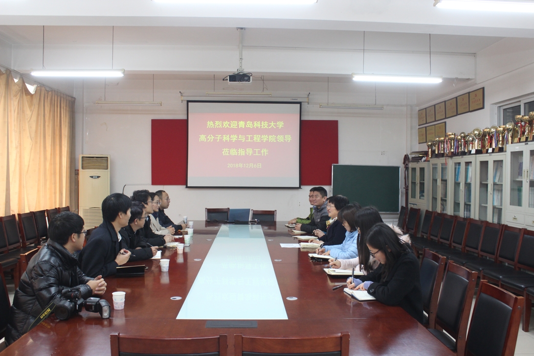 孙运彩对孙洪广一行的到来表示欢迎,并介绍了学院党建工作、学团工作、学科专业布局、专业特色等情况。孙洪广介绍了青岛科技大学高分子学院的发展历程、学科建设以及党建工作基本情况。双方交流了学院党总支学习习近平新时代中国特色社会主义思想、建功立业新时代和解放思想大讨论开展情况,就进一步加强党建和学团工作,提高党建和学团工作水平进行了经验交流。随后,双方围绕思想政治状况、履行职责情况、学生思政工作管理方面开展交流讨论,相互借鉴,学习经验。