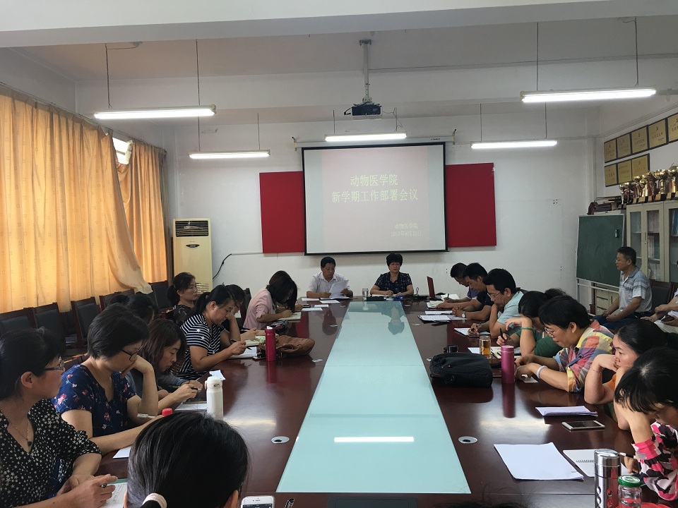 8月31日,动物医学院在生物楼C205召开新学期工作部署会议,会议由党总支书记孙运彩主持,学院领导班子及全体教职工参加。