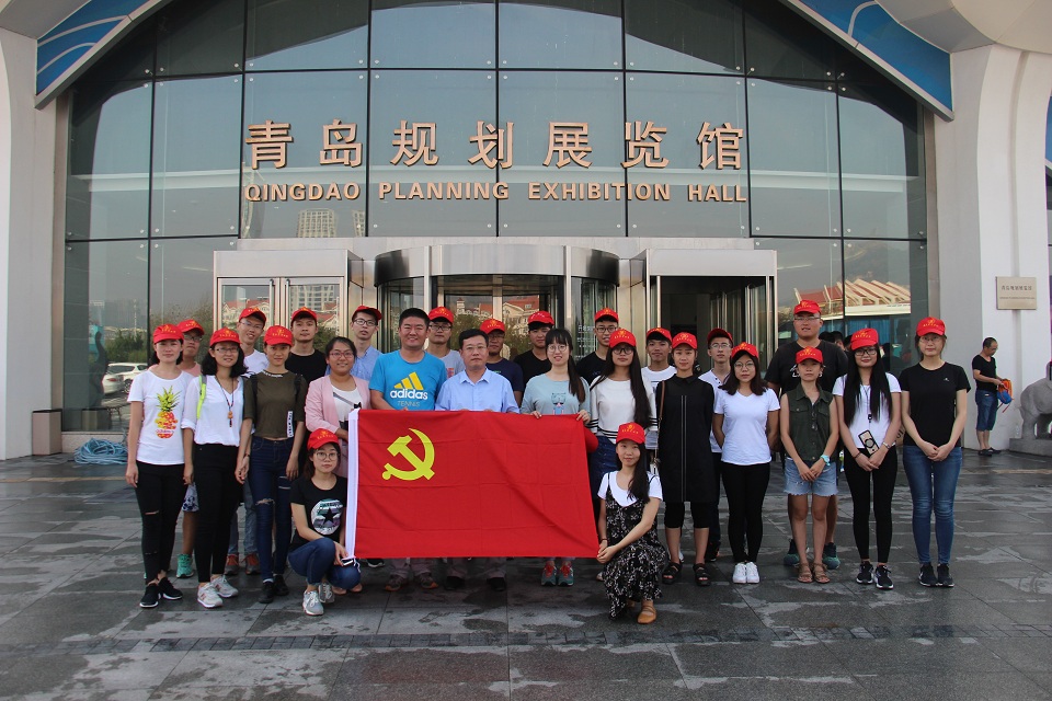 在青岛市规划展览馆内全体党员依次参观了百年规划、战略规划、360度全景展示、专项规划等展厅,学习了青岛市“创新、协调、绿色、开放、共享”的发展理念,“世界眼光、国际标准、本土优势”的国际化战略视角以及贯彻发展十三五规划、建设蓝色经济领军城市的发展目标。全体党员在青岛市规划馆前,面对鲜红的党旗,整齐列队,进行中国共产党入党誓词宣誓。