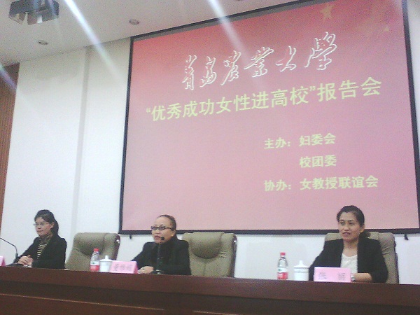 10月17日19点,青岛农业大学在学术会馆第三报告厅举办“优秀成功女性走进高校”报告会。校妇委会主任张丽、校团委副书记许颖出席了本次会议。报告会特邀请我校科技处副处长、动物科技学院教授、山东布莱凯特黑牛科技股份有限公司董事长董雅娟作报告。