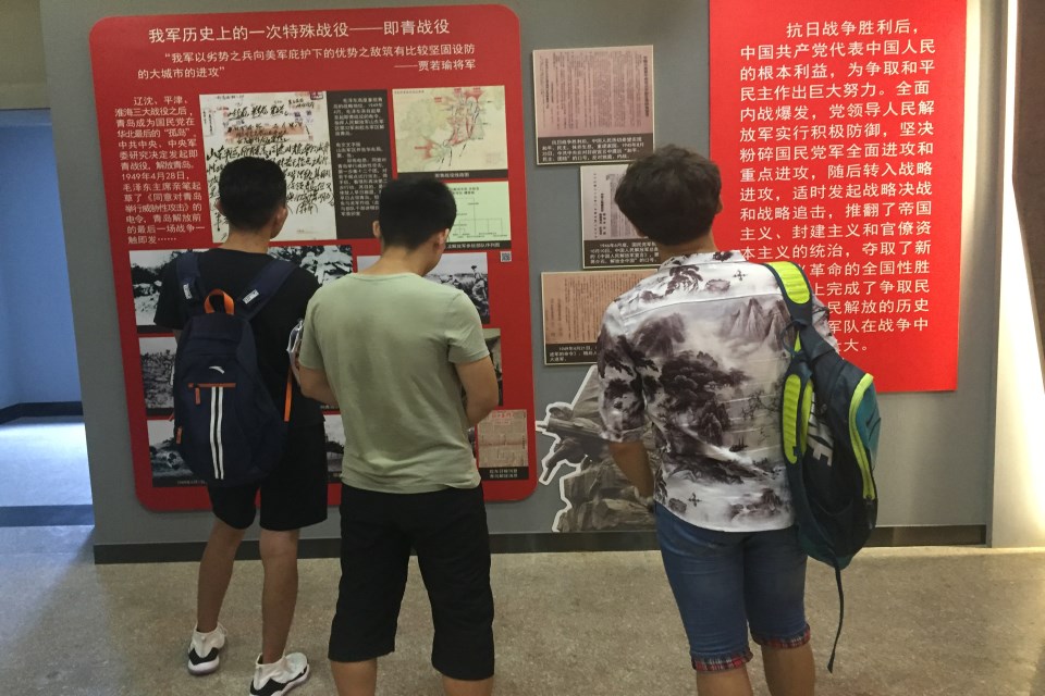 到达纪念馆后,实践队队员们怀着崇敬的心情先后参观了烈士纪念堂、烈士事迹陈列馆和烈士群雕《山河魂》,并认真学习了抗战时期的抗战形势、抗日英雄事迹等,追寻革命足迹,深切领略了革命先辈在这片红色土地上浴血奋战的光辉历史,深情回顾了党在青岛大地生根发芽、成长壮大的伟大历程。珍贵的影像资料和革命遗物,生动地讲述着震撼人心的红色精神,参观学习的队员们无一不感触至深。