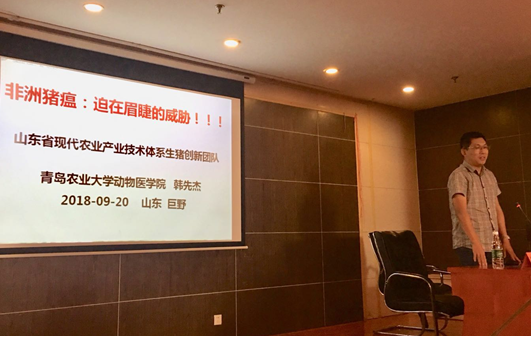 2018年8月19日-20日,山东省现代农业产业技术体系生猪创新团队岗位专家、动医学院韩先杰副教授,特种动物创新团队岗位专家、动科学院李文立教授到菏泽市巨野县进行畜牧业灾后恢复重建技术培训和指导。