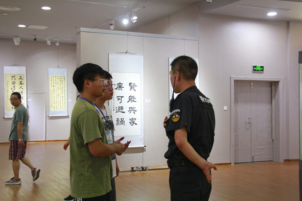 随后实践小分队来到了王懿荣的故居,王懿荣是中国近代金石学家、甲骨文的发现者和爱国志士,他发现了甲骨文并开创了我国文字学、历史学研究的新局面对保护和发扬我国古代文化遗产和甲骨学的建立做出了不可磨灭的贡献。展厅内展有“岂有雄心辄请缨,念家山破自魂惊。”“归来整旅虾夷散,五更犹闻匣剑鸣。”等王懿荣亲笔书写的诗词句令队员们感受到他深厚的文化底蕴。展区内的甲骨文片更是让人感慨祖先的聪明才智以及在文化长河中不断发展和被传承的优秀传统文化,了解集成以及弘扬文化的重要性。在博物馆队员们不仅仅是参观更是亲身加入博物馆工作人员的队伍中,大家学习并尝试通过自己的亲身实践吸引和保护游览者更加深入并且安全的了解这些历史,让参观者更加尊重传承下来的文化,在参观的过程中小心呵护这些文化的结晶。