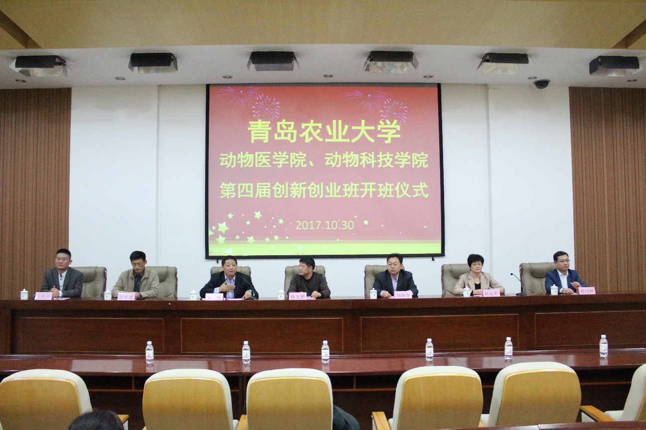 10月30日,动物医学院、动物科技学院于学术会馆第二报告厅联手举办了第四期大学生创新创业班开班仪式。青岛农业大学特聘教授、山东省高端科技工程研究院院长、青岛赛博坦迪科技有限公司董事长孙玉贤博士,青岛农业大学教务处副处长刘焕奇,动物医学院党总支书记孙运彩,动物医学院院长单虎,动物科技学院党总支副书记展学斌,动物医学院党总支副书记徐以师出席了开班仪式,学生工作办公室成员及全体第四期创业班同学参加。