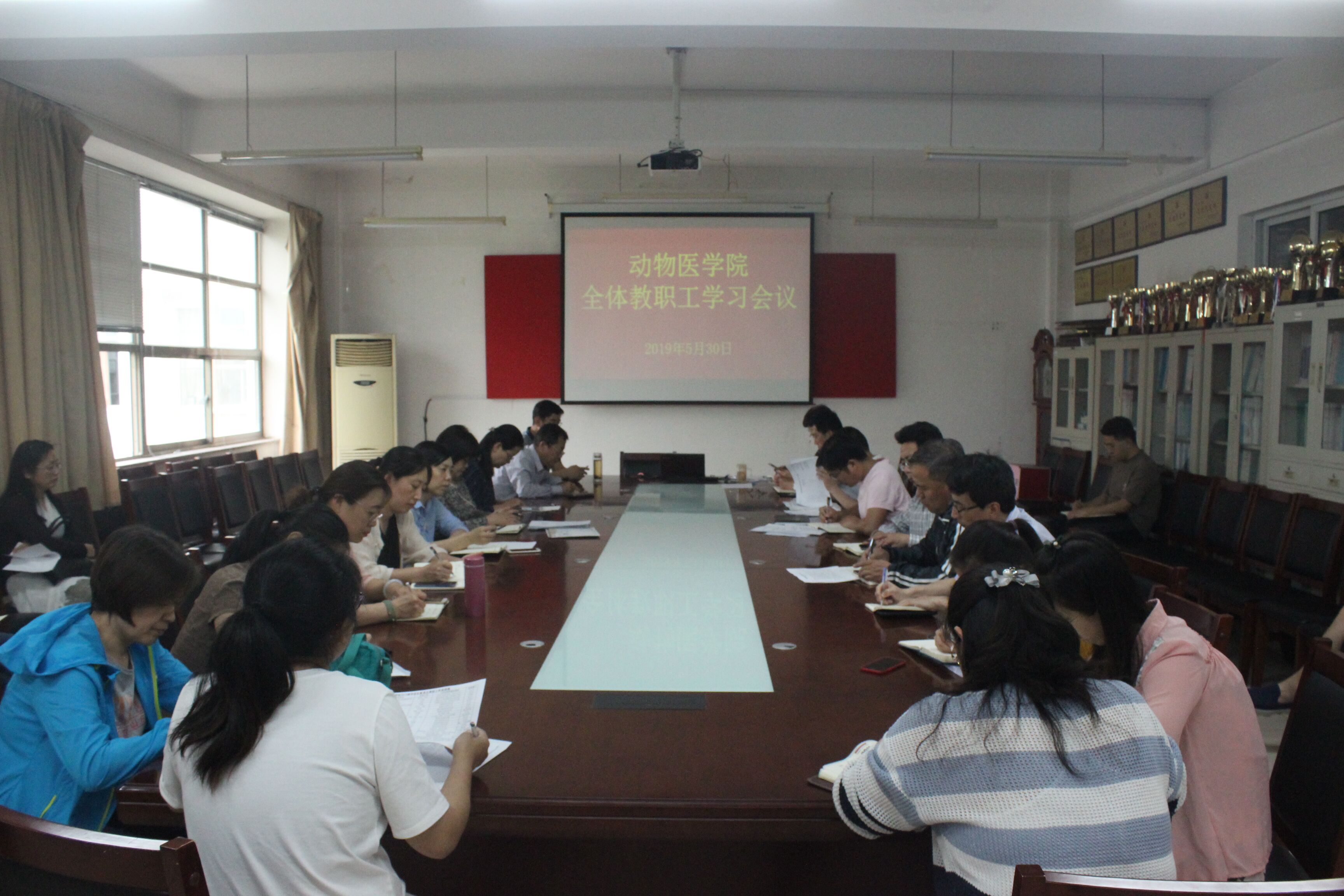 5月30日,青岛农业大学动物医学院召开全体教职工会议,学习了习近平总书记在中央全面深化改革委员会第八次会议上的重要讲话《因势利导统筹谋划精准施策 推动改革更好服务经济社会发展大局》精神。会议由动物医学院党总支书记孙运彩主持,学院全体教职工参加。
