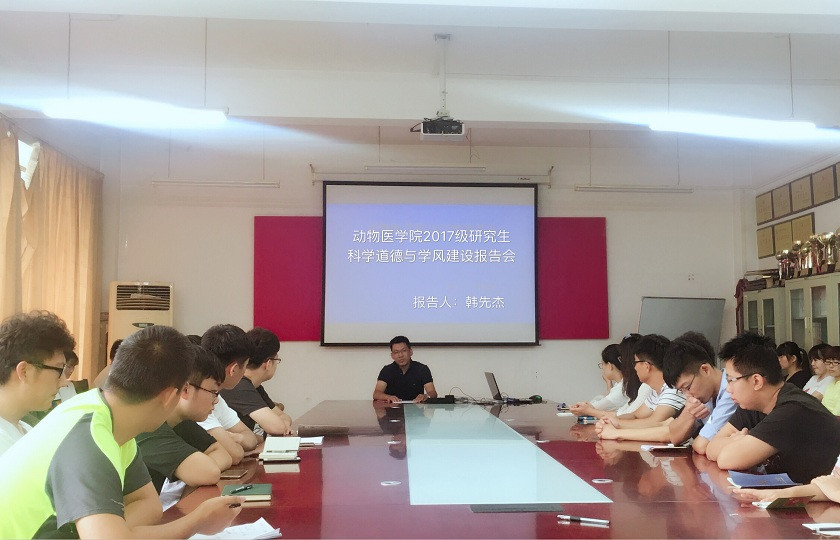 韩先杰副院长为研究生做科学道德和学风建设教育专题报告,教育研究生务必做到诚信科研,在学习和科研过程中要严格要求自己,保证科研数据的准确性和真实性,不弄虚作假,诚信做人。同时要努力学习,勤于思考,敢于创新,提高自己的创新意识和创新能力。