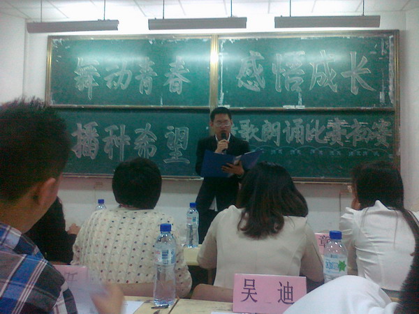 比赛过程中,各位参赛选手以“舞动青春、感悟成长、播种希望”为主题,将诗歌以与众不同的形式朗诵给大家,让同学们在诗歌中思考,在诗歌中感动,在诗歌中体味人生。声情并茂的朗诵加之优美的背景音乐,感染了台下每一位同学,赢得大家阵阵掌声。两个多小时的比赛在悠悠旋律中落下帷幕,此次比赛在给同学们带来欢乐的同时,为学生提供了一个展示才能、彼此沟通的平台。