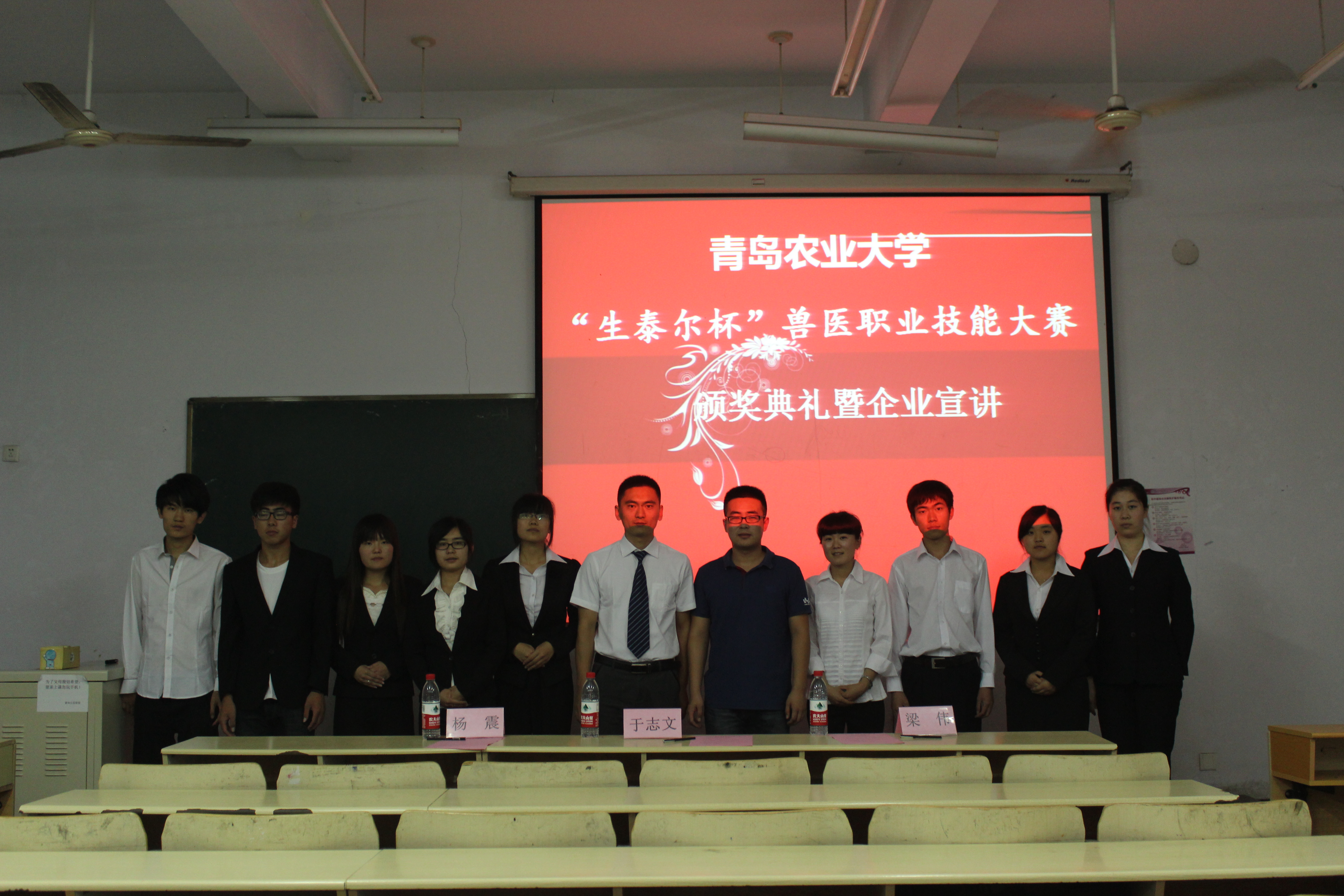 6月21日18:30,由动物科技学院学生会校企合作部主办的“生泰尔杯”兽医职业技能大赛颁奖典礼暨企业宣讲在教学区C110顺利举行。动物科技学院分团委书记梁伟,北京生泰尔生物科技有限公司(山东区)总监助理于志文,业务经理杨震出席颁奖典礼。