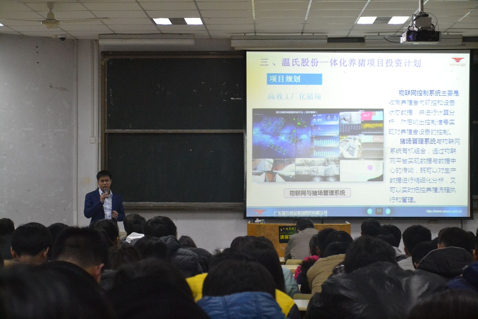 “家财万贯,带毛的不算,一场病过,全军覆没。”杨俊借用畜牧行业流行语指出,在创业过程中,一定要严抓产品质量,进行差异化竞争,要善于发现市场机遇和利益点,在不断创新中获得生存与发展。杨俊希望同学们在工作中要避免眼高手低,理论与实践并重才能获得更好的发展。