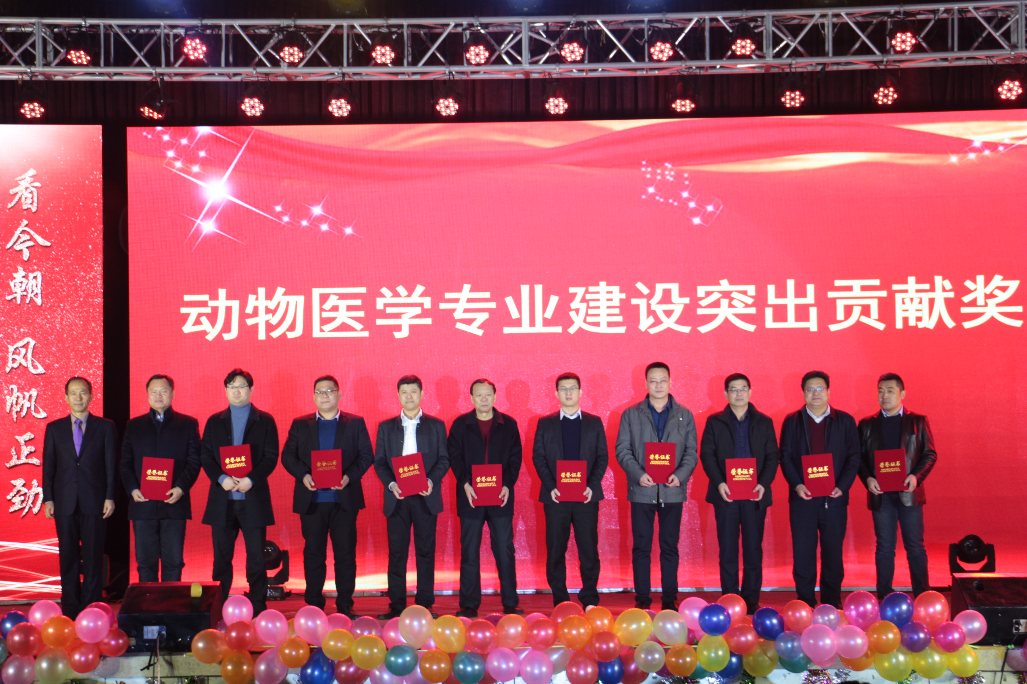 本场晚会不仅是一场视听盛宴,同时将学院历史沿革展示、教师宣誓、学生宣誓、兽医职业礼仪、我最喜爱的老师颁奖、专业建设突出贡献奖、专业建设奉献奖等的总结表彰等环节穿插,创新了形式,丰富了内涵,提供了一个师生同台、校友同聚、向退休老教师汇报专业建设成就的机会,达到了凝聚人心、提升信心的效果,是一次思政育人与联欢晚会的完美融合,是师德师风建设与学风建设的精彩呈现,是党建工作围绕中心工作开展的体现。相信今后动物医学院全体师生将更加齐心协力,砥砺前行,团结拼搏,再创辉煌!