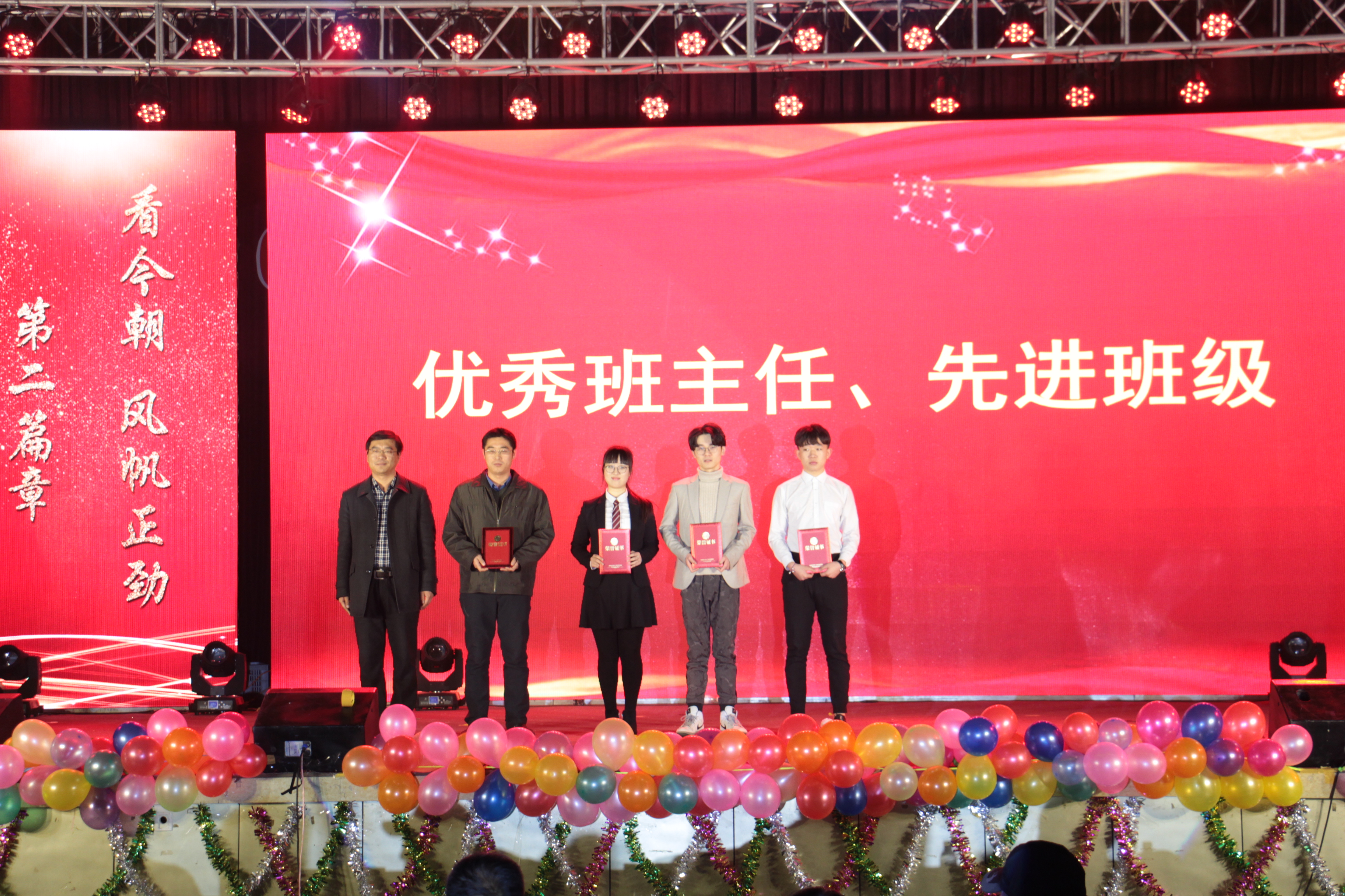 党委学工部副部长王国辉为优秀班主任、先进班级颁奖。