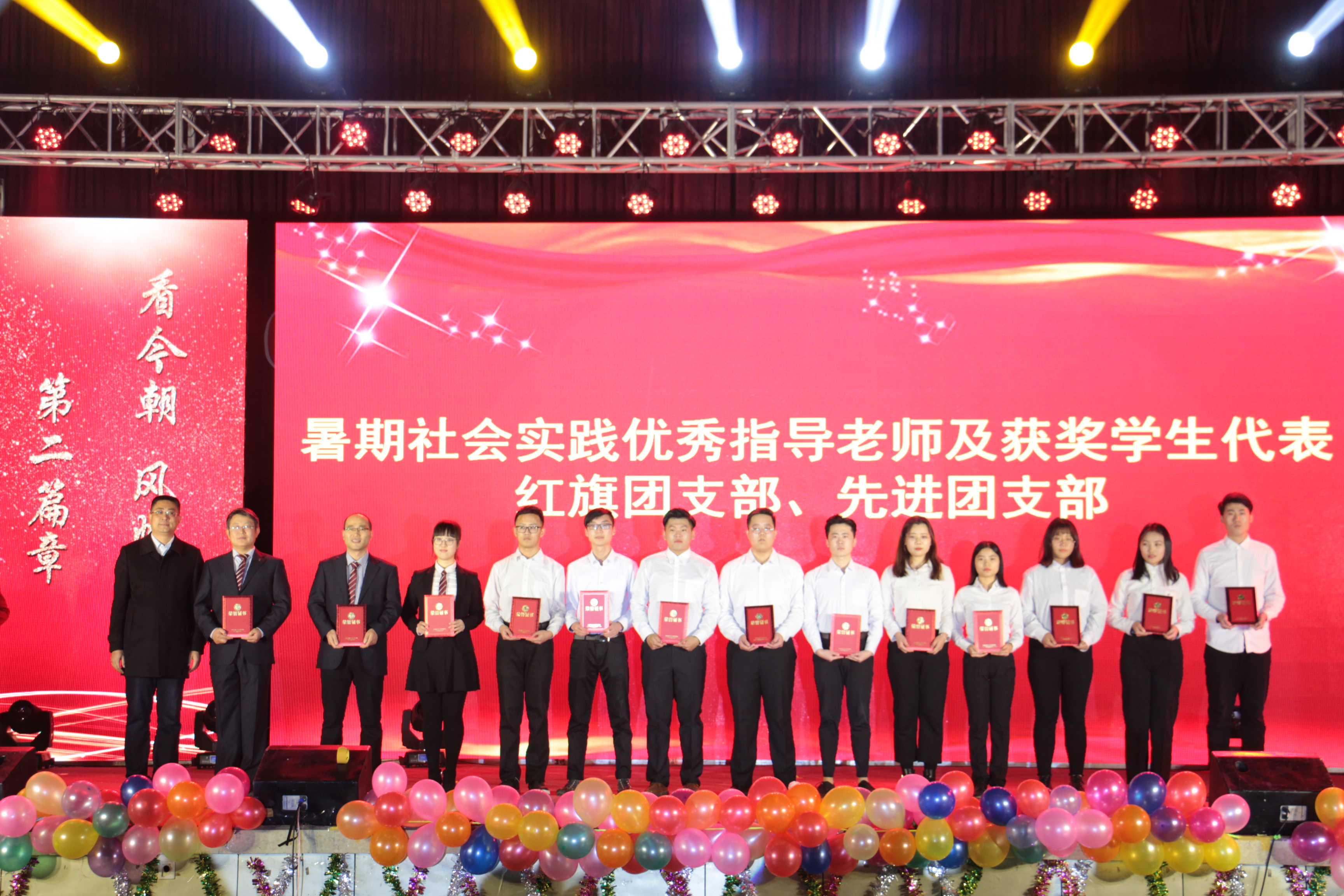 党委宣传部副部长孙广为暑期社会实践指导老师、获奖学生代表、红旗团支部、先进团支部颁奖。