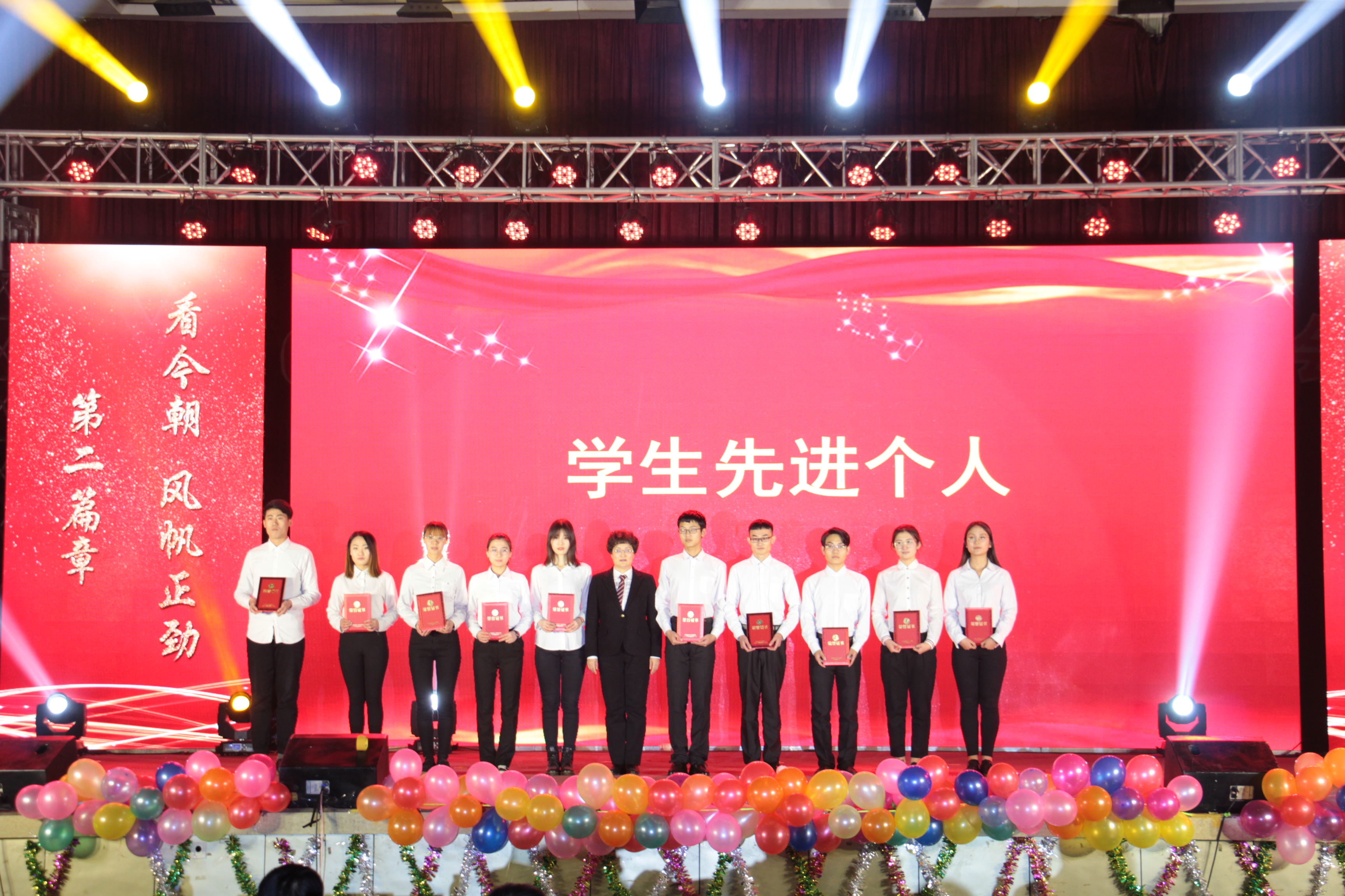 学院党总支书记孙运彩为学生先进个人代表颁奖。