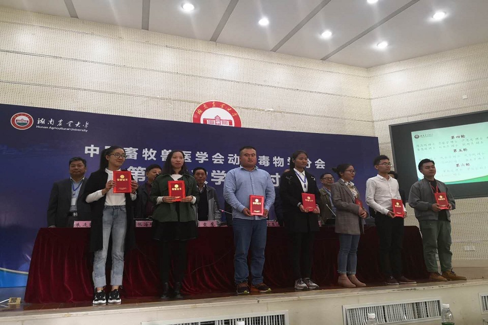 会议由中国畜牧兽医学会动物毒物学分会主办,湖南农业大学动物医学院、湖南省畜牧兽医学会、湖南农业大学科学技术协会、湖南畜禽安全生产协同创新中心联合承办。大会收到论文133篇,报告了64篇,冯超同学做了题为《脂多糖对犬子宫内膜的炎性损伤作用》的报告,陈浩同学做了题为《比格犬巧克力中毒临床诊断指标的筛选》的报告。大会评选出优秀论文39篇,其中冯超同学撰写的论文获评优秀论文奖。