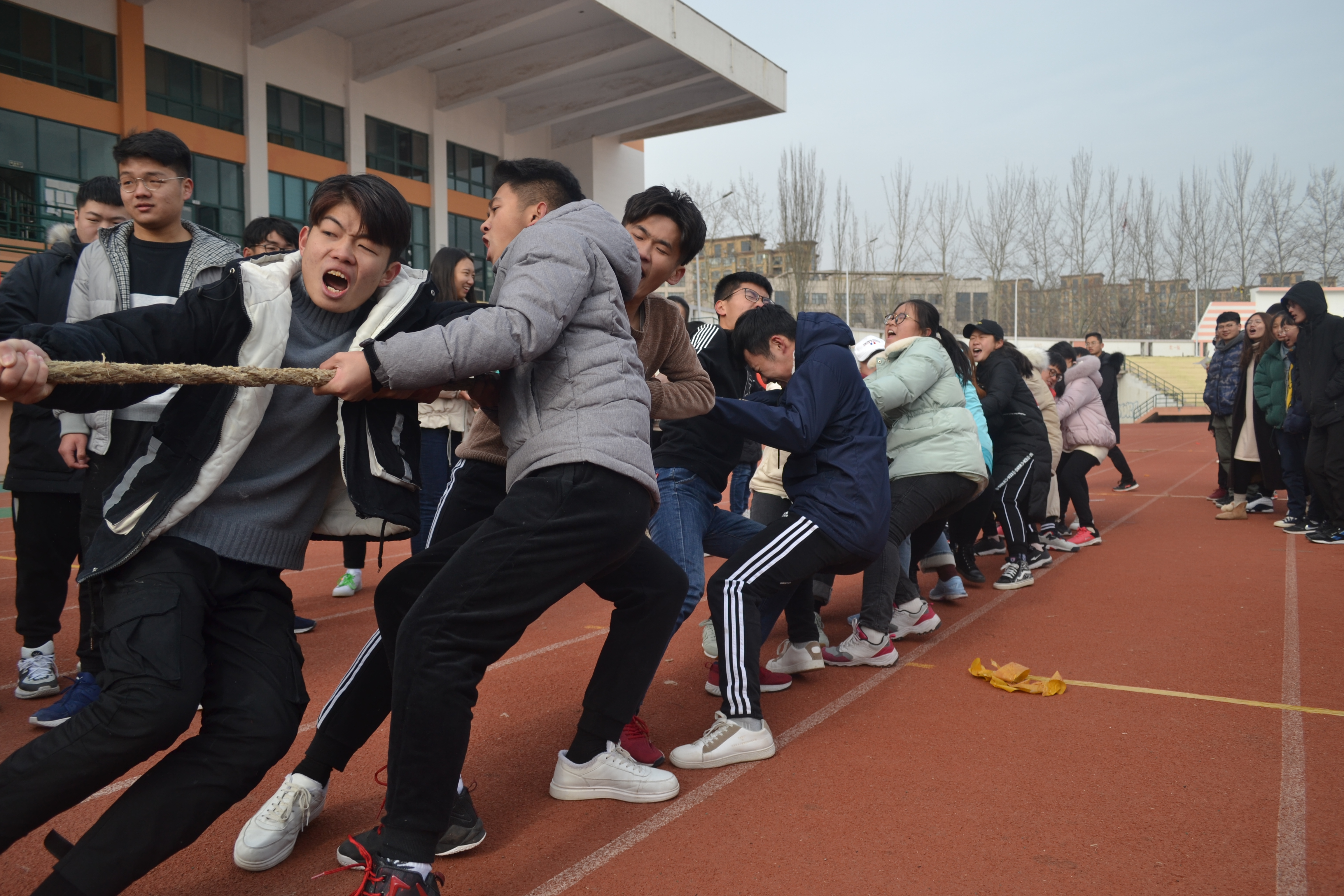 本次趣味运动会分个人赛和团体赛,其中个人赛包括抛绣球、自行车比慢等,团体赛包括传呼拉圈、拔河等。与传统运动会不同的是,此次运动会将使参与者感受到团队合作的重要性作为首要理念,旨在增强各班之间的相互联系,增强同学们的团结意识。尽管冬日寒风凛冽,但丝毫不影响同学们的参赛热情。每位在场同学或奋力拼搏或加油打气,尤其是在拔河比赛中,全体同学一起团结比赛,展现出他们勇于拼搏、敢于竞争的青春风采,呈现出一幅激情澎湃的景象,驱赶了冬日的寒冷。