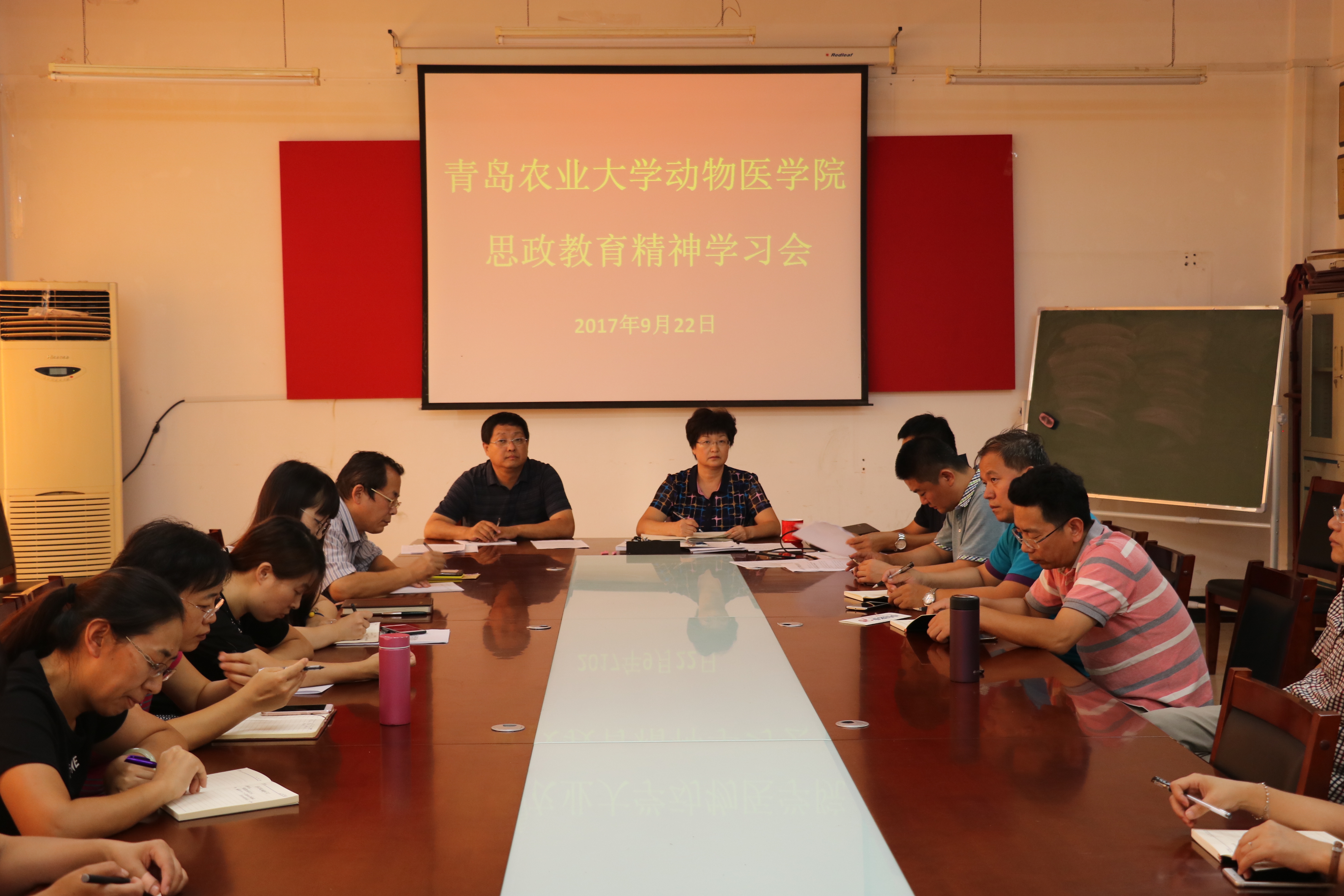 9月25日,动物医学院召开思想政治教育精神学习会议,会议由党总支书记孙运彩主持,全体教职工参加。