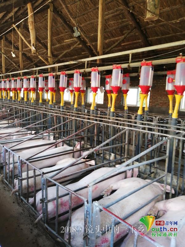 由于粪污的有效处理,使得猪场内环境优良,育肥猪的生长环境卫生且健康,从而保证了肉质鲜美。图中的育肥猪正在干净健康的环境中进行“午休”。中国青年网通讯员 秦旗旗 摄