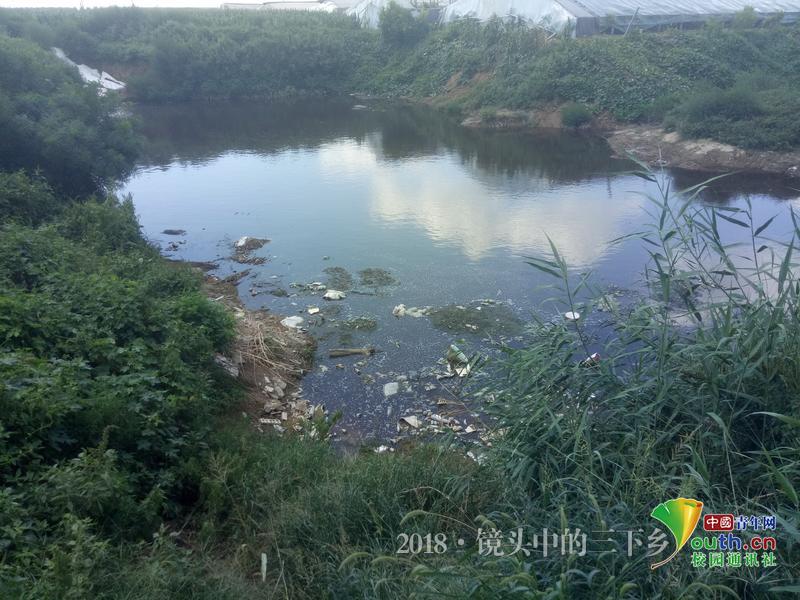 尽管调研平度市的多家养殖场时了解到粪污处理在当地进展很好,但是仍有猪场中的污水处理不够科学。图中为经沼气池利用后的污水,经了解,当地的沼气生产原料为“水泡粪”,因此有相当一部分污水产生。指导教师韩先杰分析是沼气生产的技术和设备还有所欠缺,所以“水泡粪”后的污水得不到有效处理,韩先杰建议将污水氧化处理后还田。 中国青年网通讯员 王瑾 摄