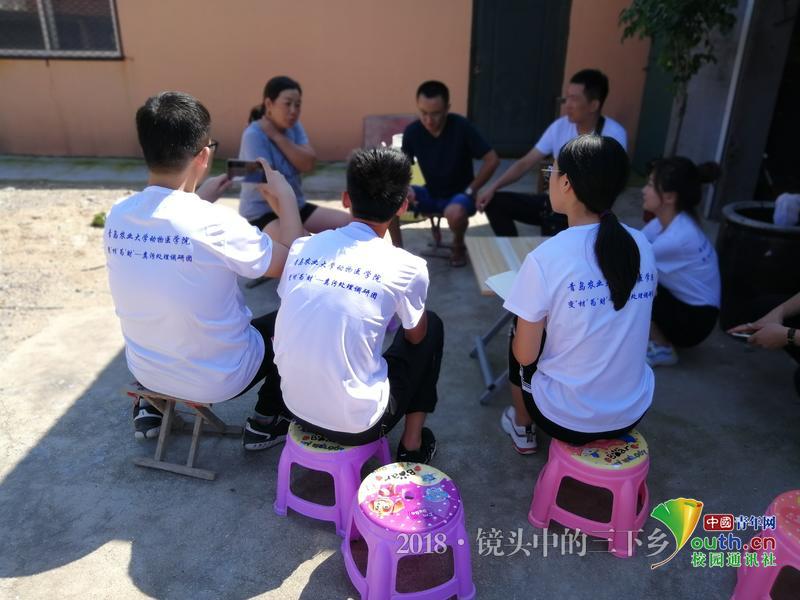 调研团成员在韩先杰老师带领下与当地个体养殖户进行交谈。养殖户牟晓燕提到,在国家的环保政策指引下,当时绝大多数个体养殖户开始重视“粪污处理”问题,他们通过“生物能源”、“粪污还田”等方式做到将粪污“变肥为宝”。 中国青年网通讯员 秦旗旗 摄