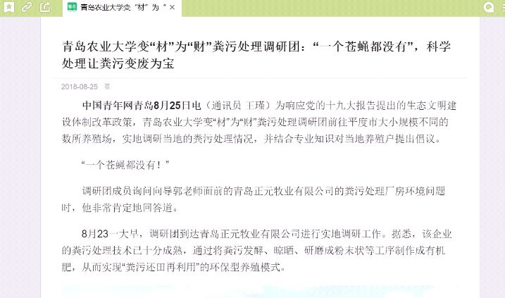 为响应党的十九大报告提出的生态文明建设体制改革政策,青岛农业大学变“材”为“财”粪污处理调研团前往平度市大小规模不同的数所养殖场,实地调研当地的粪污处理情况,并结合专业知识对当地养殖户提出倡议。