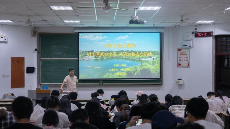 9月25日,动物医学院副院长陈甫教授以《树牢国家安全观,共筑生物安全防线》为主题,为学院2022级全体本科生讲授“开学第一课”,课程既聚焦生物安全领域的专业知识与实践要求,更融入家国情怀、专业使命、法治素养等思政元素,旨在引导学生从“国家安全”高度认识专业价值,从“行业担当”角度明确成长方向,实现知识传授与价值引领的深度融合。