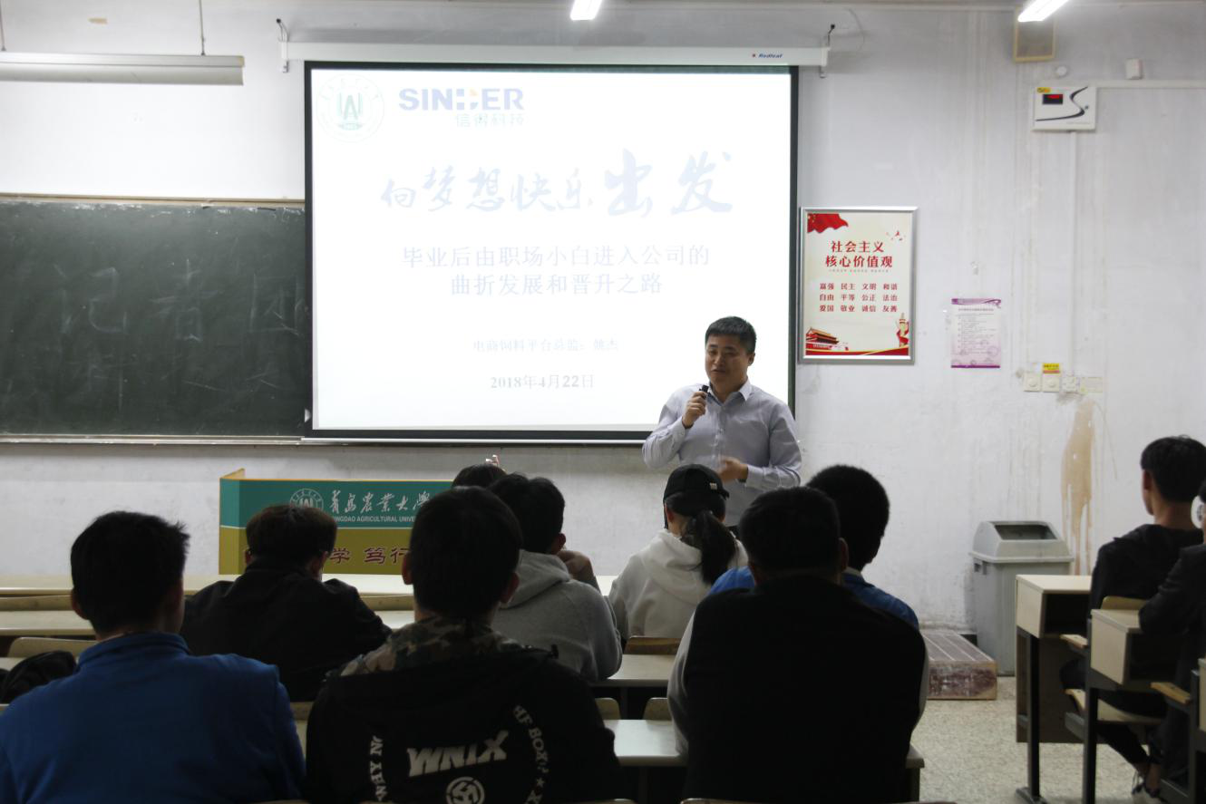 4月22日,动物医学院与山东信得科技股份有限公司联合举办了校企合作同盟班培训活动,此次同盟班由信得科技集团电商饲料平台总监姚杰主讲,第五期同盟班全体同学参加。