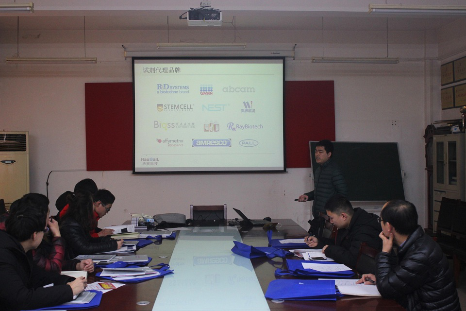 为提高学生的实验技能,夯实专业知识,加强社会教育与专业教育的紧密结合,3月7日,青岛农业大学动物医学院与青岛浩赛科技股份有限公司于生物楼C205联合召开培训会议,会议邀请业内知名专家陈春雷担任主讲,动物医学院部分学生参加培训。