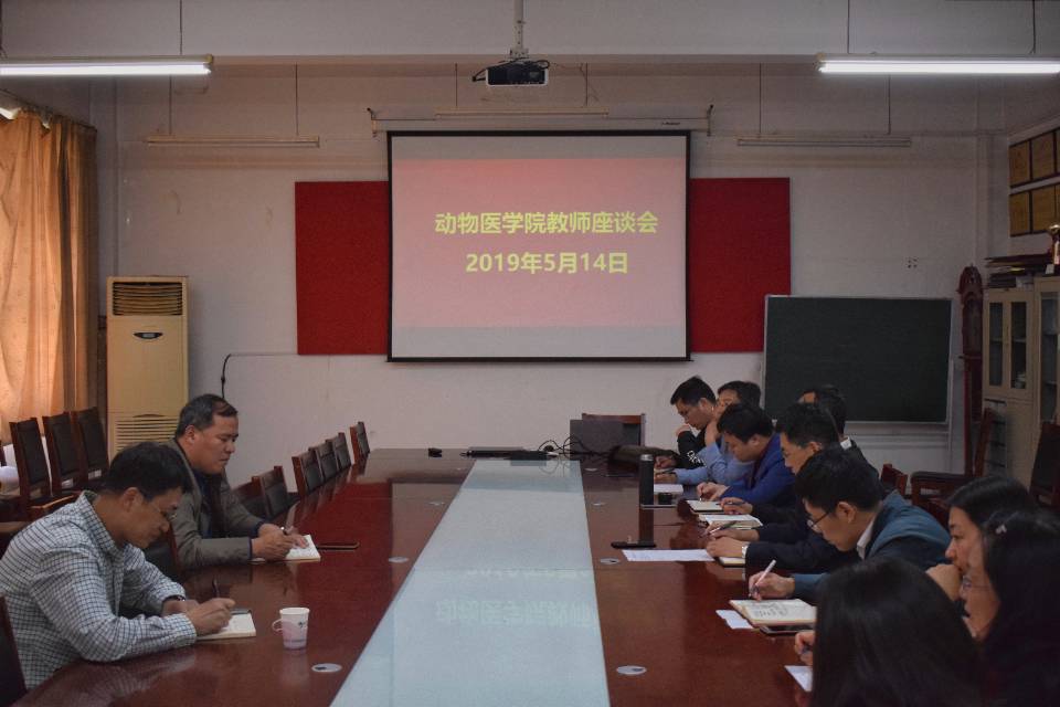 5月14日,青岛农业大学动物医学院召开教师座谈会,会议就进一步提高教学一线教师的积极性和创造性,落实立德树人根本任务,推动学校一流专业建设,办好人民满意的高等农业教育,听取了教师代表的意见。会议由动物医学院副院长韩先杰主持,学校教务处张海庆老师、动物医学院各教研室主任和教师代表等共十二位老师参加座谈。