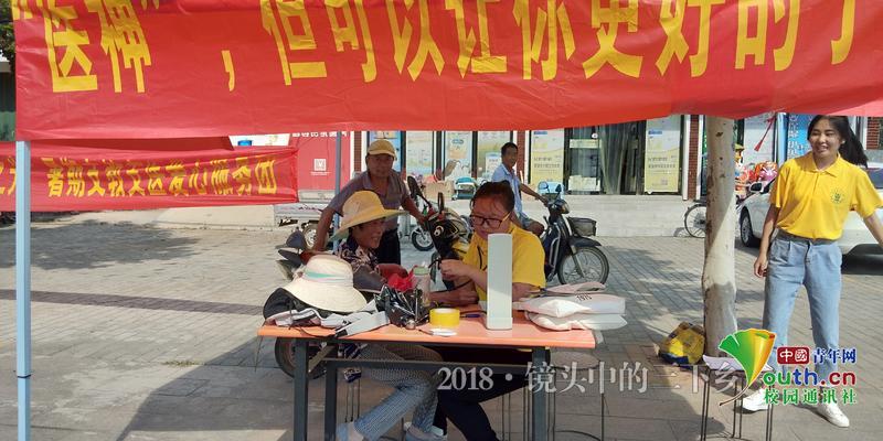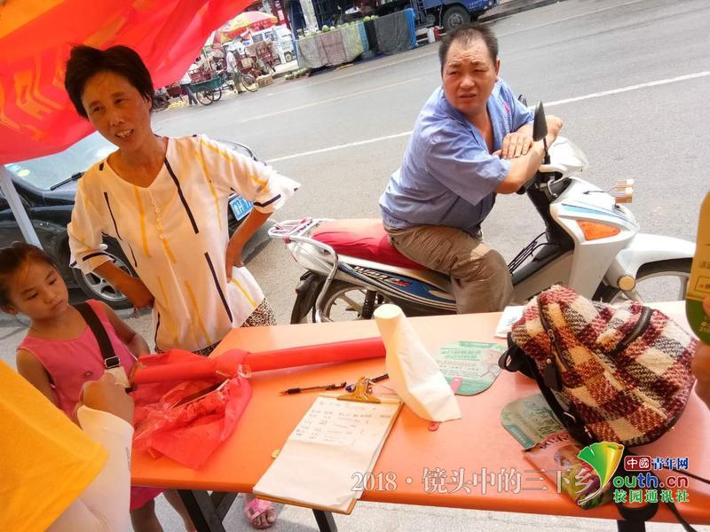 在当代学生近视和中老年血压不正常的发生率颇高的情况下,为了让当地村民更好的了解自己,在当地医疗部门那里了解到当地老年人血压都颇高,但都不太注意,对村民这种不闻不问的事件队员们很是难受,村民们不问,是因为他们不了解,不注意,而是他们不懂得。为了,防止类似事件继续发生,队员通过购买视力表和租借血压仪在集头人员密集的地方对当地村民进行了街头义诊活动,给村民免费量血压、测视力,讲授健康知识,给他们仔细讲解注意事项,对于身体发生异常的村民讲授预防和治疗相关知识,让他们都了解自己的健康状况。