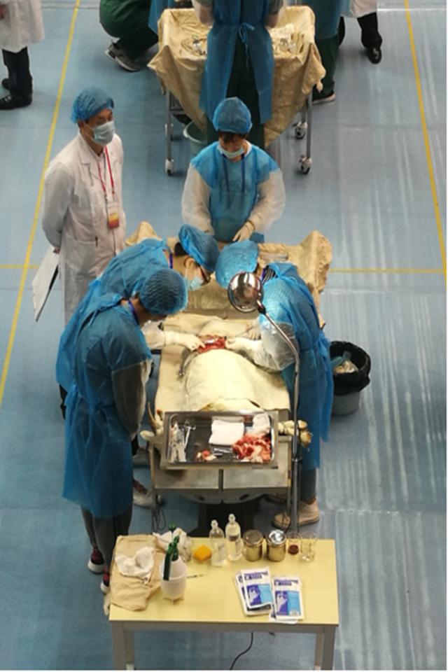 青岛农业大学代表队由动物医学院党总支书记孙运彩和副院长韩先杰带队,专业老师迟良、王建琳、张传美指导,任丹宁、路璐、张云瀚、曹芳、李通等5名动物医学专业本科生队员组成,韩先杰副院长担任本次大赛裁判。队员们与来自全国64所高校的300多名参赛队员同台竞技,在比赛中经过山羊瘤胃切开术、禽的病理剖检、病原菌检查与血凝试验三个比赛项目的角逐,我校代表队以配合的默契、娴熟的操作、严谨的态度、镇静自如的发挥,得到了现场裁判的一致好评,获得本次大赛团体二等奖,充分展现了动医学子的风采。